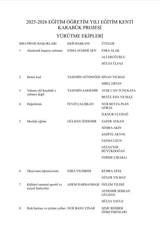 2025-2026 Eğitimde Marka şehir Karabük projesi kapsamında okul yürütme ekibi kuruldu.